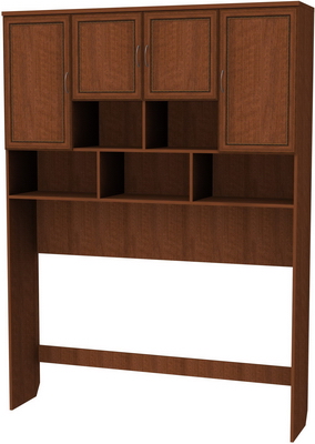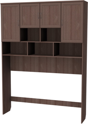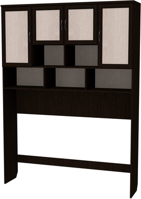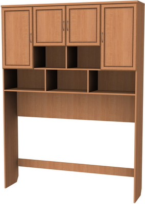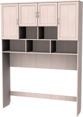 Сделать любое помещение просторным и удобным можно с помощью антресоли, которая будет хорошо смотреться в кабинете, гостиной и даже спальне. За счет высоких боковых стенок под нее уютно впишется стол, диван или кровать, а на полках можно будет разместить документы, книги, аксессуары и сувениры. Верхняя часть изделия состоит из множества секций с полками и отделениями с дверцами. Антресоль можно использовать как дополнение к рабочему столу с целью экономии пространства в комнате, а также, с целью хранения необходимых вещей и документов, которые ранее загромождали стол. Изготовленная она из высококачественного ДСП с отделкой под ольху, дуб или ясень, что делает такую мебель не только прочной, долговечной, но и презентабельной.