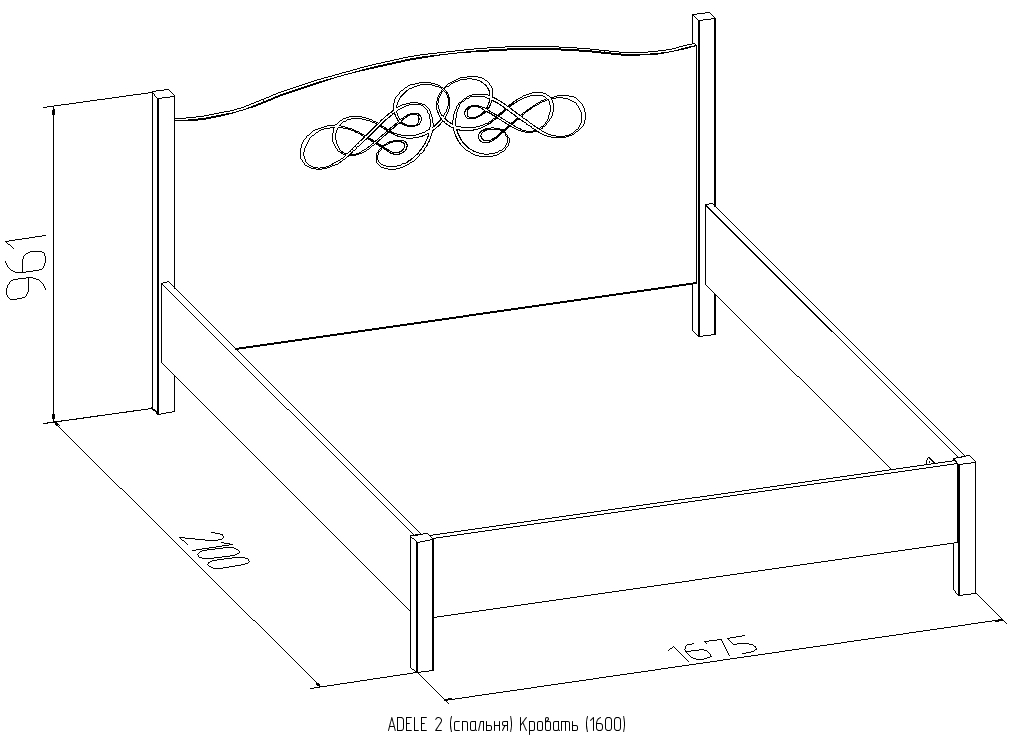 Яркую индивидуальность кровати ADELE придают толстые кроватные опоры и изящный вензельный рисунок на изголовье в тон кроватным опорам, выполненный УФ-печатью.