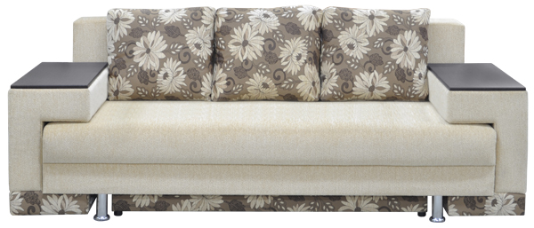 Современный стильный дизайн. Возможность использовать как центральный объект интерьера. Для трансформации требуется небольшое расстояние между стеной и диваном. Ровное спальное место. Наличие бельевого ящика. В основании спинки и сиденья деревянная рамка, на которую кладется пружинный блок с настилом из термовойлока и эластичного листового пенополиуретана. Диван комплектуется приспинными подушками со съемными чехлами. П- образные подлокотники выполнены с декоративными накладками из МДФ. При раскладке дивана подлокотники необходимо откатить в сторону, для чего они оснащены роликами. Подлокотники также можно использовать в качестве передвижного столика. Механизм раскладки "Еврокнижка".