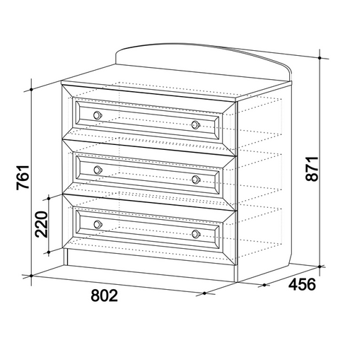 Состоит из: 3-х выдвижных ящиков.