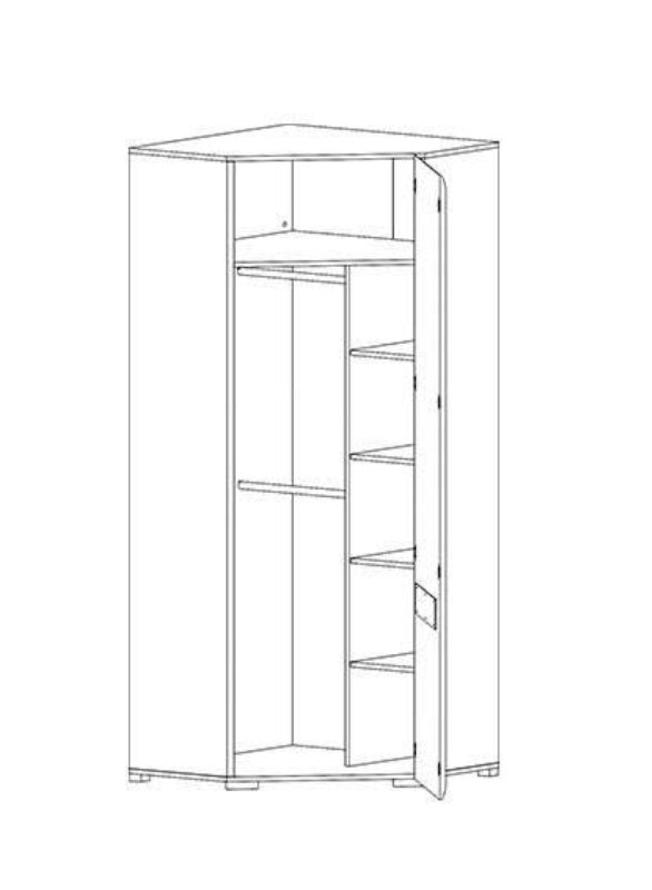 Внутри шкафа – полка со скошенным углом, 5 ниш, стационарная штанга для одежды;