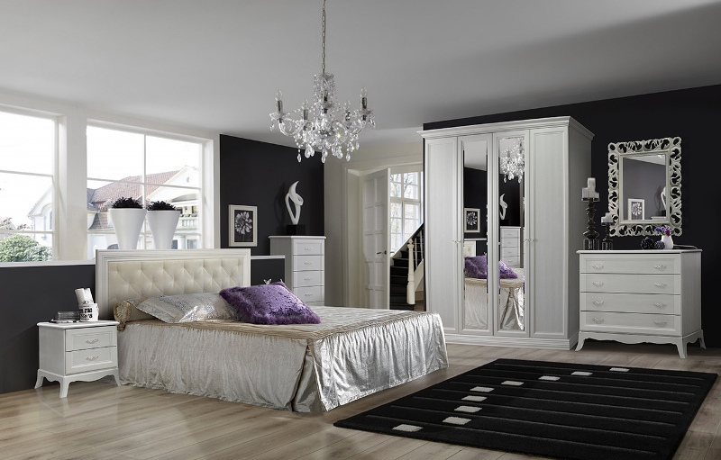 Роскошная спальня «Амели» создана специально для ценителей изысканной мебели. Шикарная двуспальная кровать в комплекте с двумя тумбами станет настоящим украшением комнаты! Искусная отделка профилями из МДФ в сочетании с текстилем смотрятся просто великолепно. Стильные тумбы очень функциональны: два выдвижных ящика вместят в себя необходимые мелочи. Мебели для спальни «Амели» — коллекция в классическом стиле для респектабельного, гармоничного интерьера Вашей спальни.