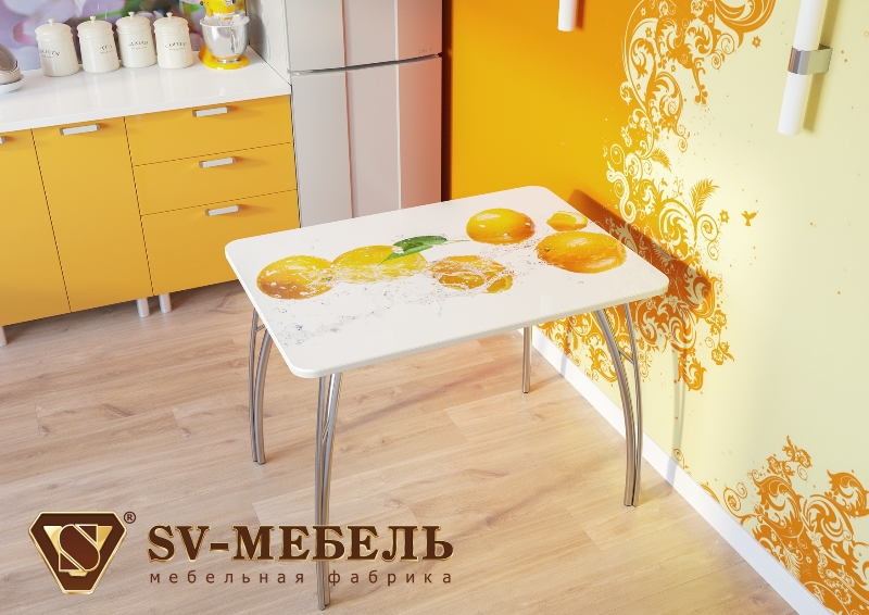 - Кухонный гарнитур «Фрукты» с фотопечатью комплектуется цельной столешницей «Антарес».