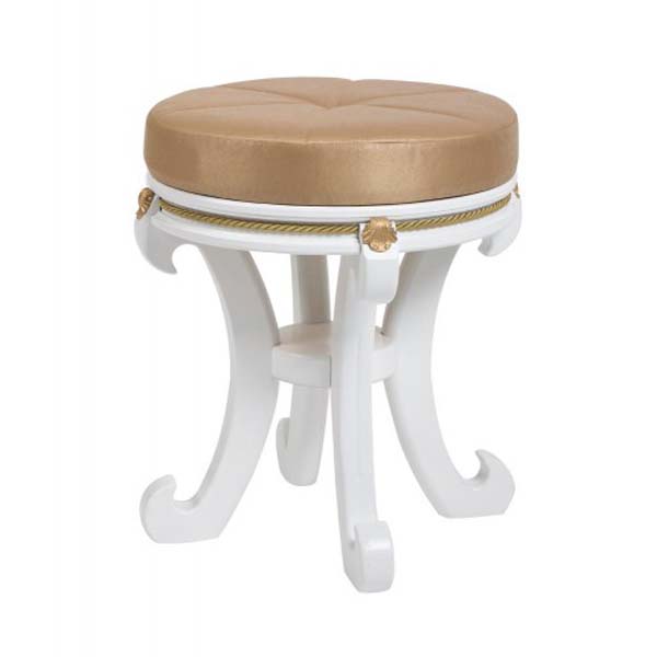 Классическая круглая банкетка с мягким сиденьем. Изящные устойчивые ножки делают ее устойчивой и прочной. Банкетка отделана золотистым витым шнуром, что придает ей дополнительный шарм. В сочетании с журнальным столиком «Глория» составит отличный ансамбль, а в отдельности украсит любой интерьер.