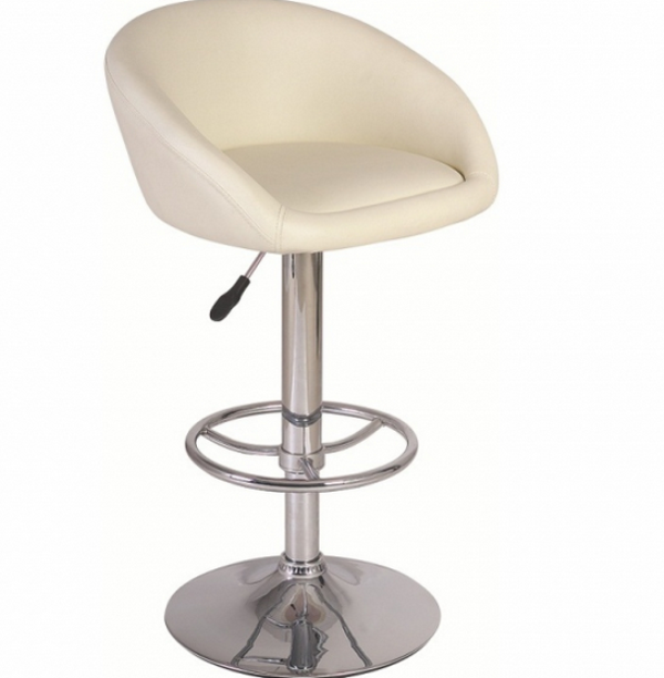 Имеет мягкое сиденье из кожзаменителя прекрасно сочетается с хромированной ножкой.