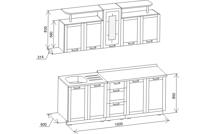 В стоимость кухонного гарнитура "Дельта" входит: каркас+фасад, столешница (пластик "ракушка", "колорадо"), пристеночный профиль.