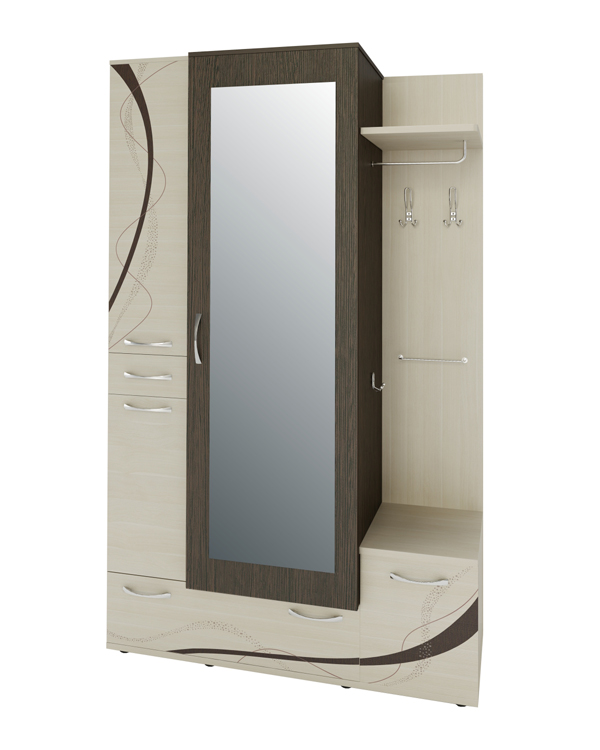 «Гармония 15.10» – cовременная модель мебели для прихожей, выполненная в европейском стиле. Чистые цвета, естественные линии рисунка на фасаде придают модели изящества.