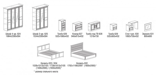 Цена указана за полный комплект спальни,также вы можете выбрать отдельные модули.