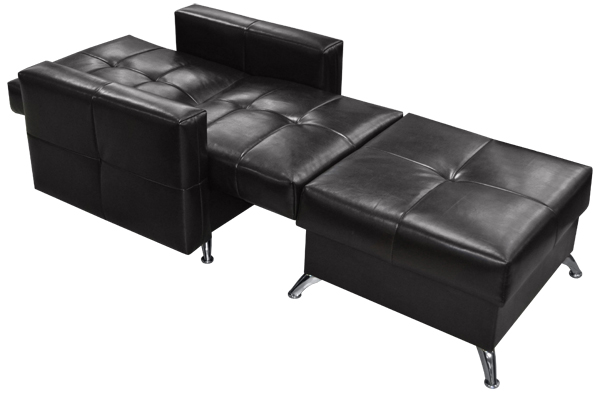 Современный строгий стиль. Чехол спального места условно съемный. Сиденье сформированы на основе металлокаркаса с деревянными латами, на котором закреплен мягкий мат из листового пенополиуретана и соединены между собой трехпозиционным узлом трансформации. В коробчатом основании пуфа расположены емкости для хранения спальных принадлежностей, выполненные из ЛДСП. При использования кресла совместо с пуфом образуется спальное место.