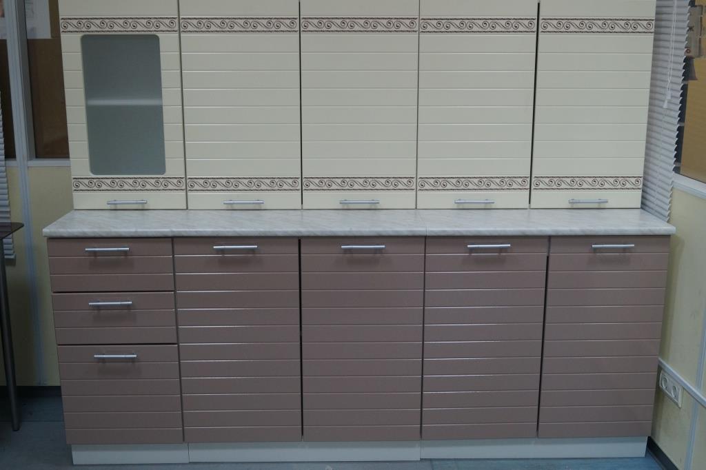Материалы: Корпус - ЛДСП белый. Фасады - МДФ мокко/ваниль глянец Столешница - постформинг 26 мм/