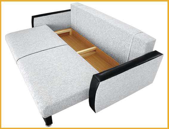 Современный молодежный стиль. Возможность использовать как центральный обьект интерьера. При трансформации требуется расстояние между стеной и диваном. Ровное спальное место. Для удобства присутствует задняя стенка в режиме спального места. Наличие бельевого ящика. Диван-кровать дополнительно опирается на металлические опоры. В основании спинки и сиденья деревянная рамка, на которую кладется пружинный блок с настилом из термовойлока и эластичного листового пенополиуретана. Съемные чехлы на подушках. В комплекте идет кресло- кровать. Разница высоты сидений кресел и дивана в пределах 3 см допускается.