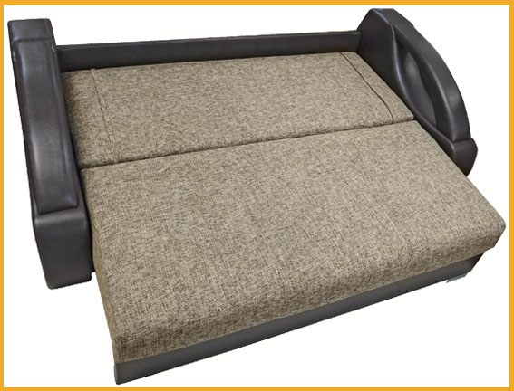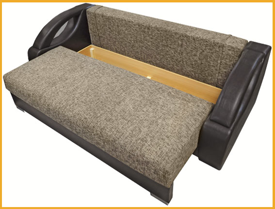 Современный стильный дизайн. Мягкие дугообразные подлокотники. Возможность использования как центральный обьект интерьера. При трансформации требуется расстояние между стеной и диваном. Ровное спальное место. Для удобства присутствует задняя стенка в режиме спального места. Наличие ящика для хранения спальных принадлежностей. В основании спинки и сиденья деревянная рамка, на которую кладется блок независимых пружин с настилом из эластичного пенополиуретана. Диван комплектуется съемными приспинными подушками, выполненными из формованного ППУ. Механизм раскладки- пантограф(тик-так)