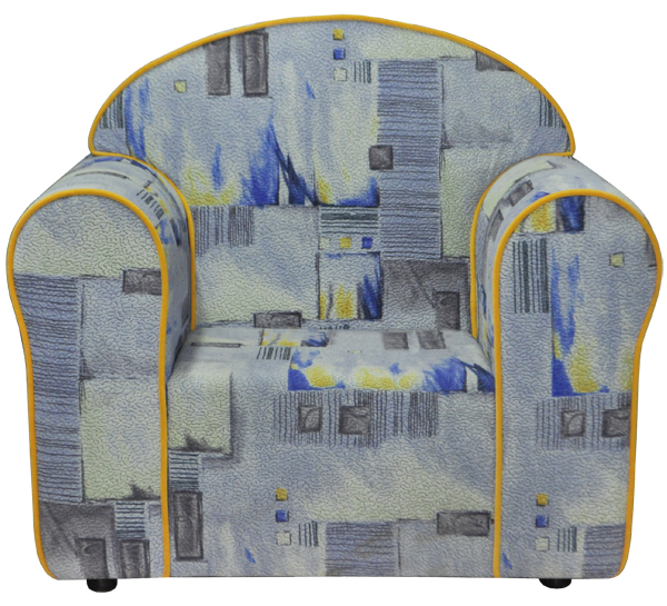 Детское каркасное кресло на поролоне. Без механизма трансформации на пластмассовых опорах. Подлокотники не съемные.