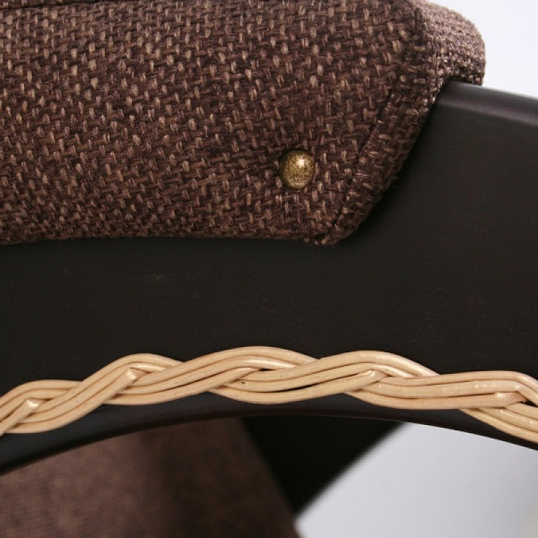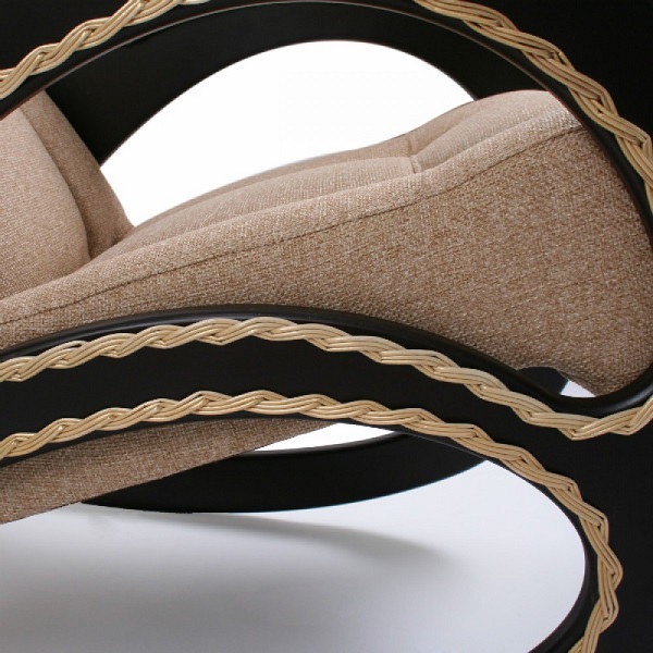 Форма боковин кресла Модели 4 обеспечивает оптимальную амплитуду качания. Боковины изготавливаются как с отделкой из лозы так и без нее. Эргономичное сиденье, спинка с удобным углом наклона, мягкие подголовник и подлокотники.