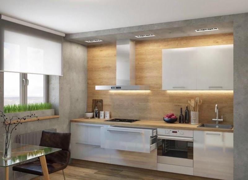 К кухне можно заказать фартук (мебельный щит) ХДФ с фотопечатью, стекло с фотопечатью либо фартук в цвет столешницы.