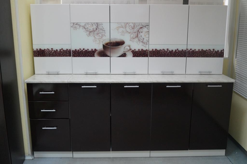 Цвет корпуса - белый Цвет фасадов - шоколад/белый перламутр с вставкой стекло "Кофе" Цвет столешницы - мрамор