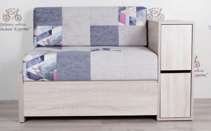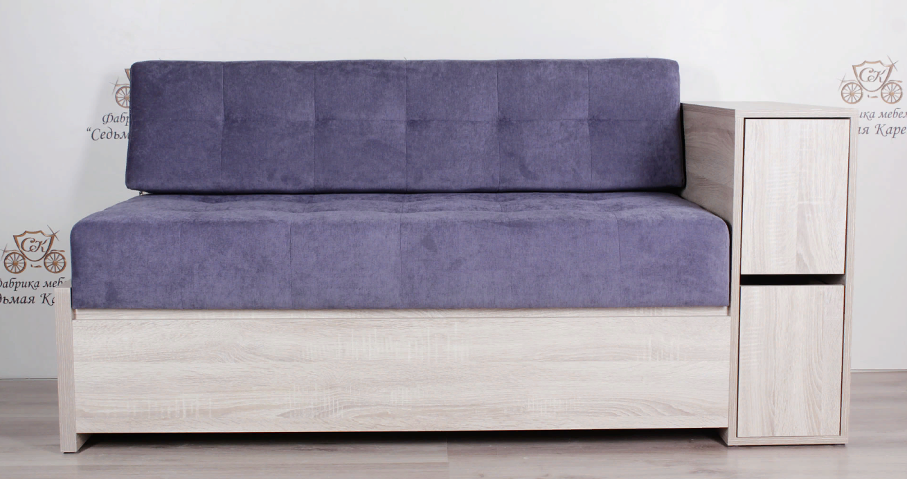 - Модель без спального места. Вместо трансформирующейся в спальное место секции может быть установлен ящик.