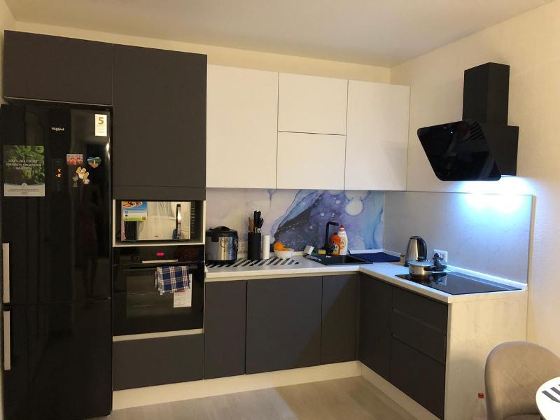 Цвет корпуса, фасада, столешницы, стекла, ручки могут быть практически любыми, цена при этом не поменяется. Кухня может быть оснащена доводчиками (Blum, Boyard).