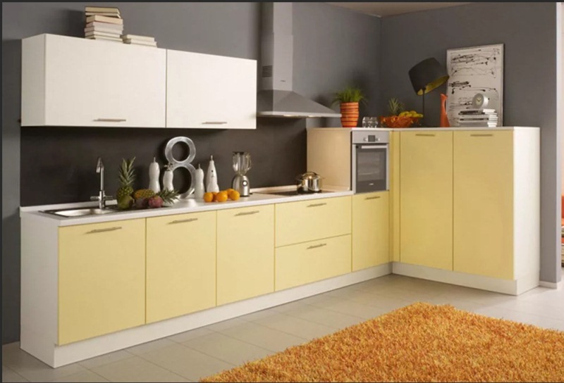 Цвет корпуса, фасада, столешницы, стекла, ручки могут быть практически любыми, цена при этом не поменяется. Кухня может быть оснащена доводчиками (Blum, Boyard).
