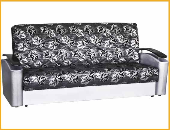 Современный стиль. Ровное спальное место. Боковины дугообразной формы, при помощи хромированных элементов на них установлены декоративные подлокотники. При трансформации дивана требуется расстояние между стеной и диваном. В основании короба имеется емкость для хранения спальных принадлежностей. Сиденье и спинка сформированы на основе деревянных рамок и на основе пружинных блоков соединены между собой настилом из эластичного листового пенополиуретана и соединенных между собой механизмом трансформации «книжка».