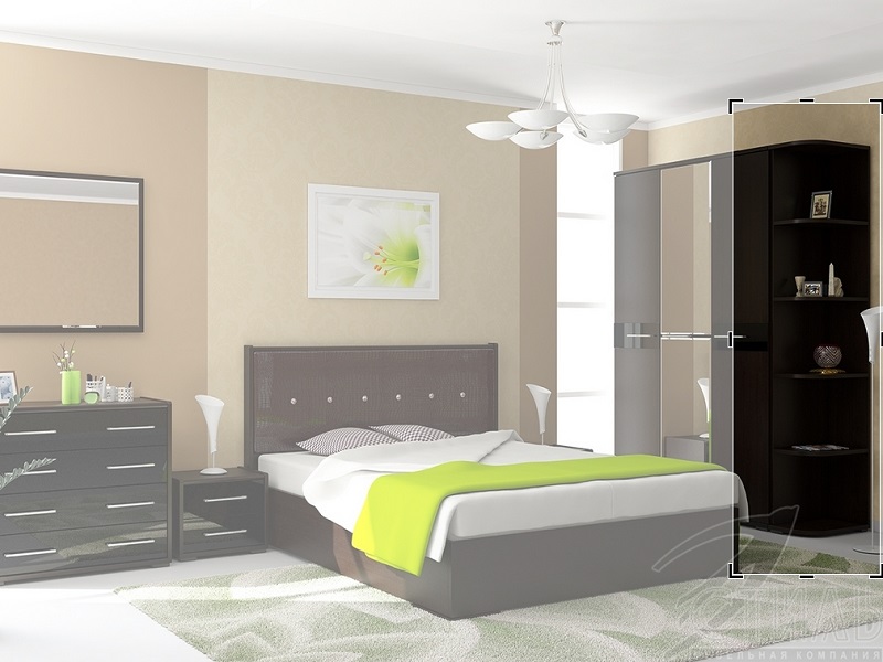 фасад - ЛДСП "Венге" + накладка МДФ "Чёрный металлик"/ экокожа "Коричневый кайман