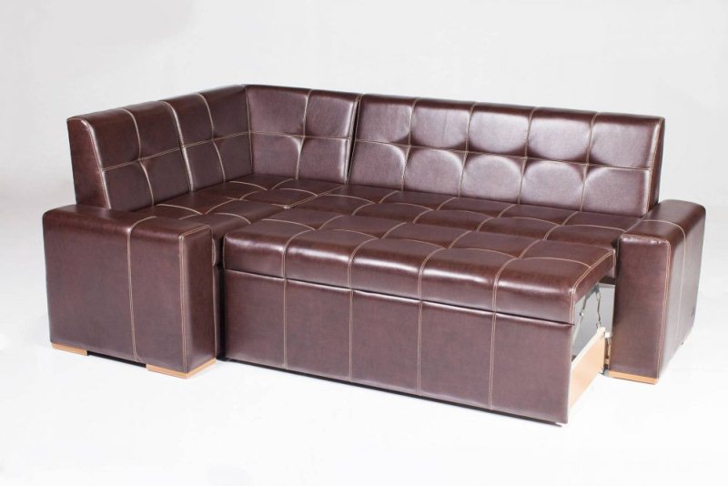 - Модель без спального места, с выкатным ящиком. Вместо трансформирующейся в спальное место секции может быть установлен выкатной ящик.
