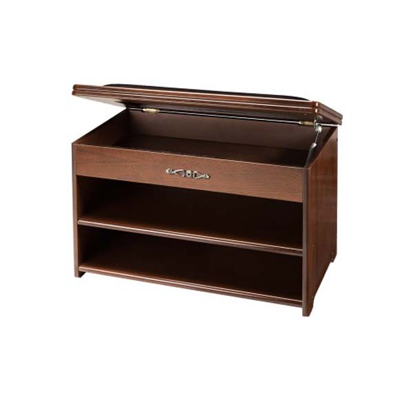 Прямоугольная банкетка, имеющая полочки для мелочей. Благодаря сдержанному дизайну станет отличным элементом для прихожей.