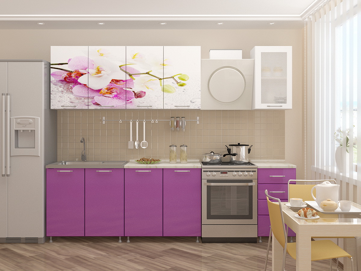 Кухонный гарнитур Орхидея МДФ фотопечать