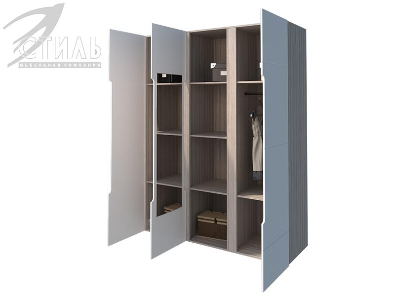 - Шкаф оснащен секциями с металлическими штангами и секцией с полками.