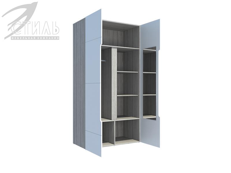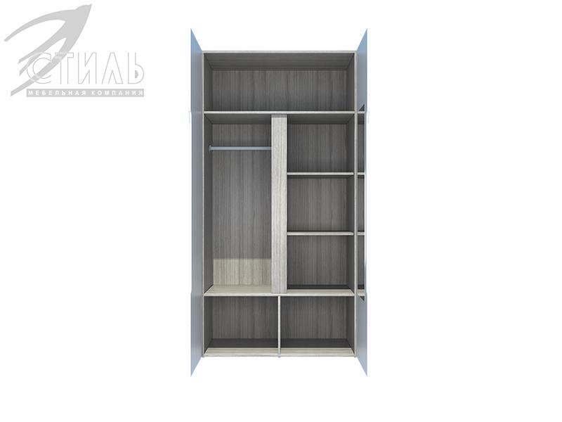- Шкаф оснащен секцией с металлической штангой и секциями с полками.
