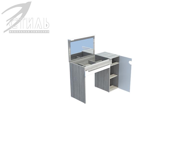 - Столик с откидной крышкой оснащен секцией с отделениями для хранения с зеркалом, и секцией с полками.