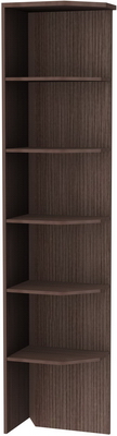 Вместительный, высокий угловой стеллаж, который будет уместно смотреться не только в офисе, но и в городской квартире, загородном доме. Стеллаж имеет пять полок, расположенных на равном расстоянии друг от друга. На них можно ставить папки с документами, домашние сувениры, книги и многое другое. Данный стеллаж быстро транспортируется, легко и надежно крепится.