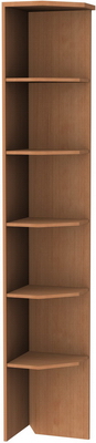 Этот практичный угловой стеллаж станет незаменимым предметом мебели, как в доме, так и в офисе. Он оборудован пятью полками, выполненными в форме многоугольника. На такую полку можно поставить не только книги и сувениры, но и папки с бумагами, разложить здесь рекламную продукцию. Все полки находятся на равном расстоянии друг от друга, они закреплены надежно и прочно, как и другие элементы стеллажа.