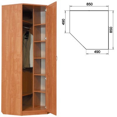 Этот практичный и красивый шкаф для одежды идеально впишется в угол гостиной или спальни. Он оснащен штангой и полками, где можно разместить любую одежду. С помощью штанги легко будет доставать костюмы, верхнюю одежду, это не займет много времени. Шкаф угловой со штангой и полками по желанию заказчика может комплектоваться зеркалом во всю длину шкафа. Благодаря зеркалу человек сразу может оценить свой внешний вид и подкорректировать его, просто не отходя от шкафа.