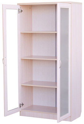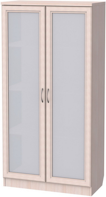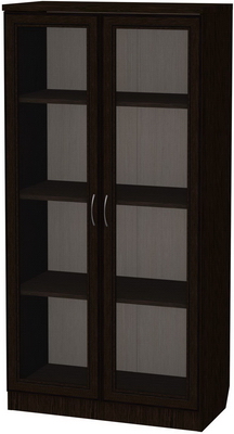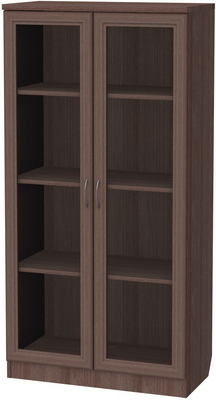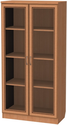 Данная модель не только практична, но и красива в своем благородстве и лаконичности. Шкаф такого типа послужит отличным визуальным обрамлением для вашего собрания книг или сувениров: содержимое скрыто за стеклом, что создает впечатление некоего закрытого хранилища, и в то же время, видны корешки книг, обозначенные красивыми шрифтами. Согласитесь, бывает приятно иногда просто остановиться рядом, бросить взгляд и убедиться, что ценные для вас предметы в порядке, находятся на месте и аккуратно расставлены, и в случае надобности очень легко можно найти нужный том и удобно взять его прямо с полки. А элементы фасада и корпус, которые выполняются в цветовой гамме - по выбору заказчика из представленных образцов, создают впечатление деревянной меблировки и отлично играют роль обрамления: светлая ольха, благородный темный дуб, роскошный и оригинальный цвет молочного дуба и другие.