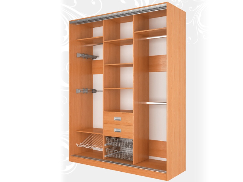Данная модель укомплектована держателем для галстуков, держателем для брюк и сеткой для обуви, которые можно убрать (с изменением стоимости)!