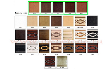 | ЦВЕТ ДЕРЕВА | 1, 11, 16, 17, 2, 23, 3, 31, 34, 36, 37, 4, 5, 52, 53, 54, 55, 6, 7, 7 патина, 8, 9, P43, Венге |