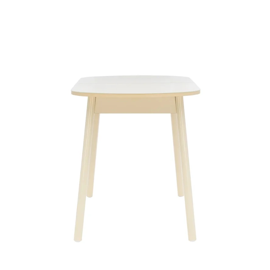 Небольшой обеденный стол Ронда крем. Длина столешницы в сложенном виде - 94 см, изготовлена она из прочного закаленного стекла толщиной 4 мм, выдерживает нагрев до 180 градусов.
