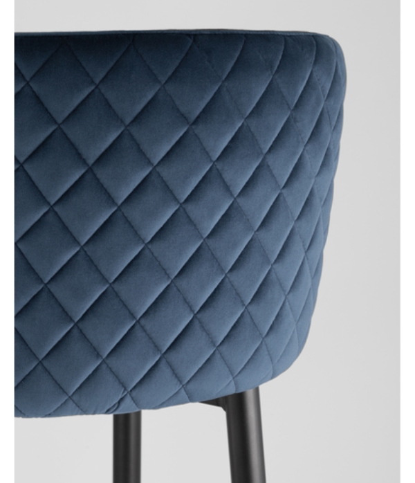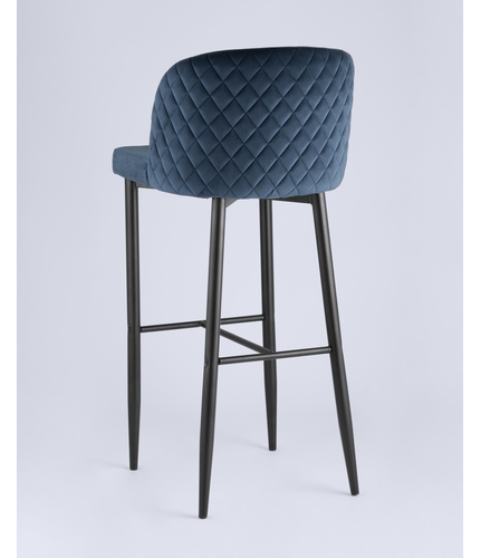 Барный стул Оскар с мягкой обивкой из велюра и стальными ножками черного цвета.