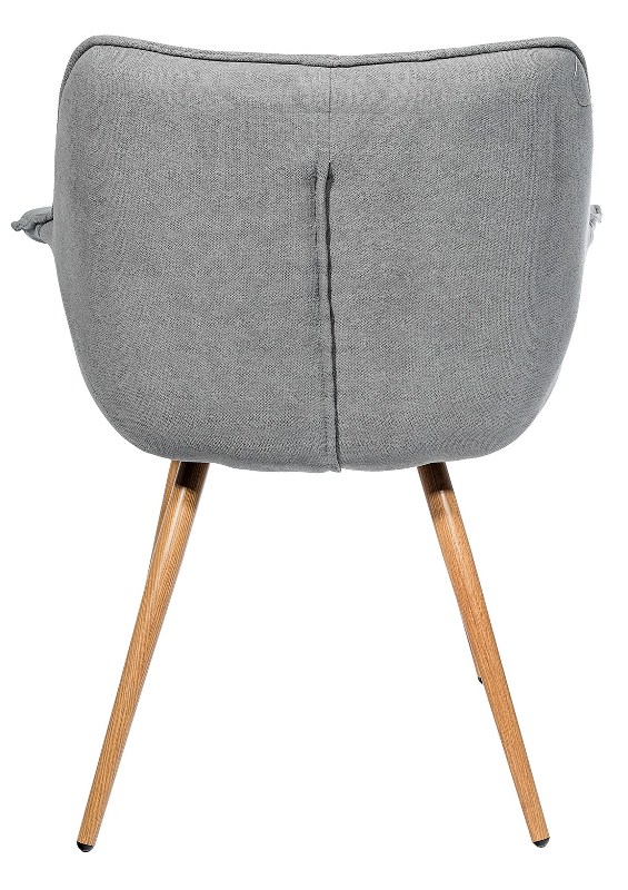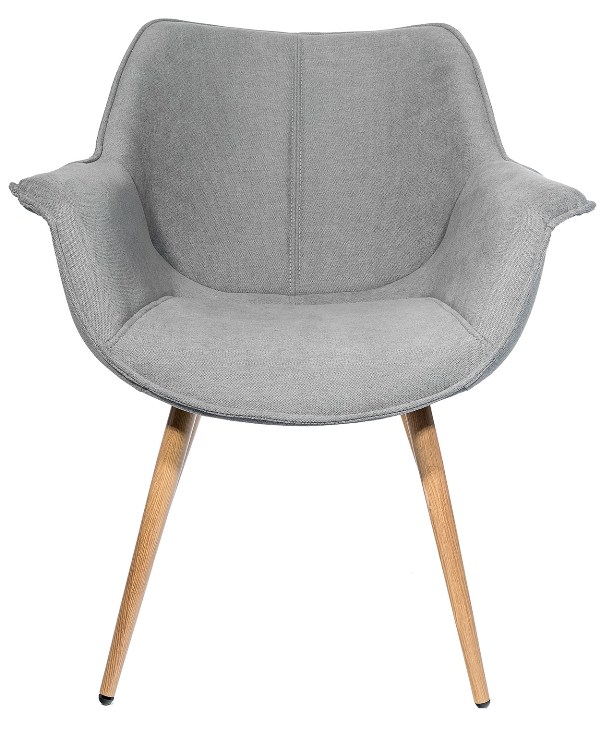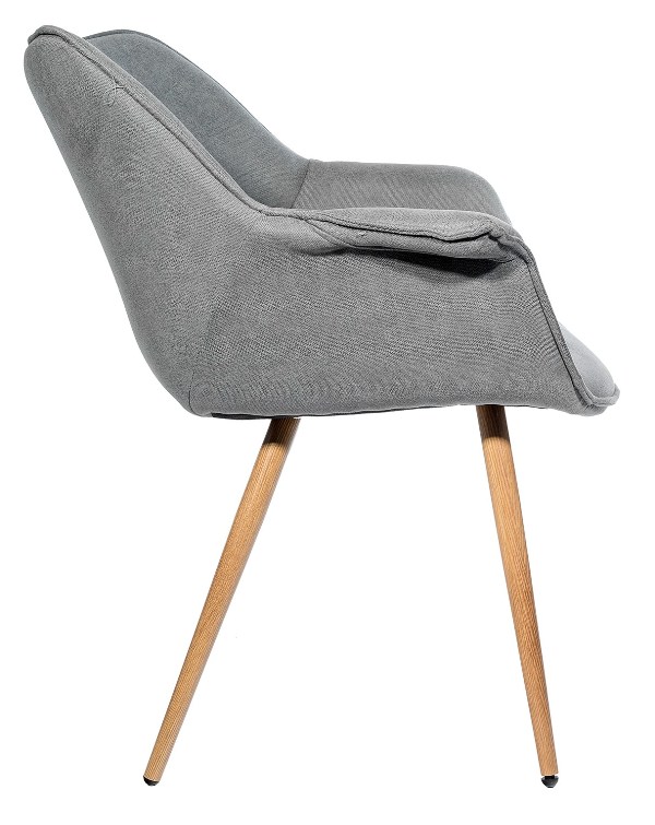 Стильный и мягкий стул имеет широкую эргономичную спинку и удобные подлокотники. Обивкой послужила высококачественная плотная ткань. Ножки стальные с принтом под дерево.