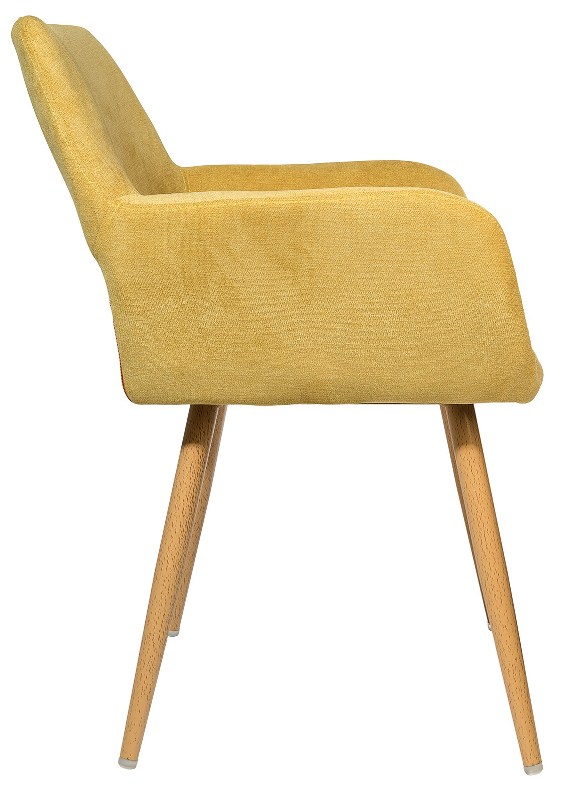 Стильный и мягкий стул имеет широкую эргономичную спинку и удобные подлокотники. Обивкой послужила высококачественная плотная ткань. Ножки стальные с принтом под дерево.