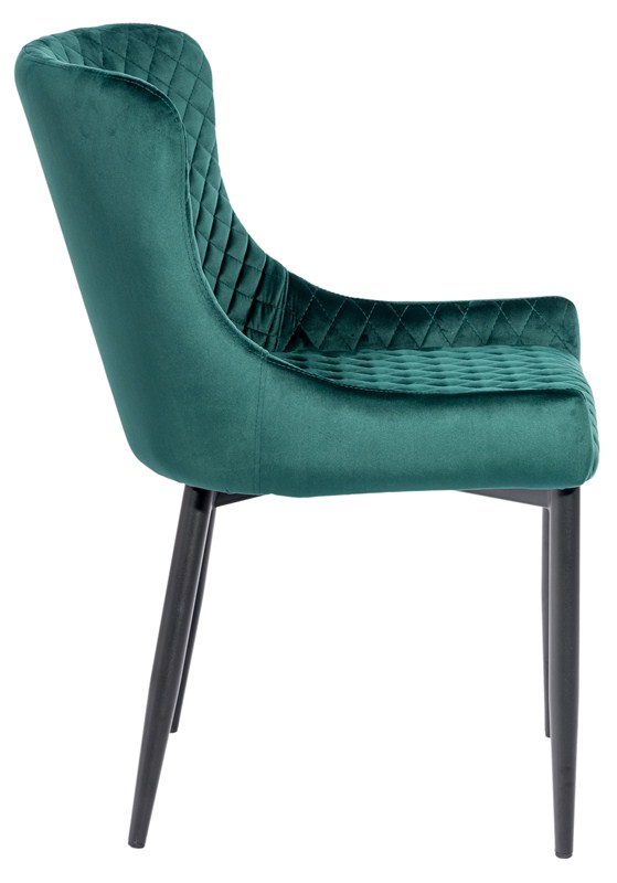 Мягкое прямоугольное сиденье с невысокой спинкой анатомической формы подарит комфорт и уют. В качестве обивки используются прочные износостойкие материалы с декором в виде ромбов. Прямые металлические ножки, имеют нестандартную форму в виде перевернутого конуса, поэтому обеспечивают хорошую устойчивость и делают стул оригинальным. Изделие прекрасно смотреться как отдельный предмет мебели, так и в комплекте с обеденным столом.
