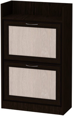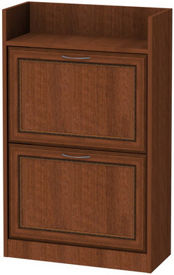 Посмотрите на модель в открытом виде: два вместительных отделения дополнительно разделены перегородками еще на две секции, в верхнюю можно поместить туфли на каблуке или обувь большого размера, в нижнюю – всю прочую. Вы можете поставить эту тумбу не только в прихожей, но в узком коридоре, и она не будет мешать проходу. Ее ширина – всего 590 мм. Если возникнет необходимость переставить тумбу, сделать это очень просто: модель весит всего 20 килограммов.