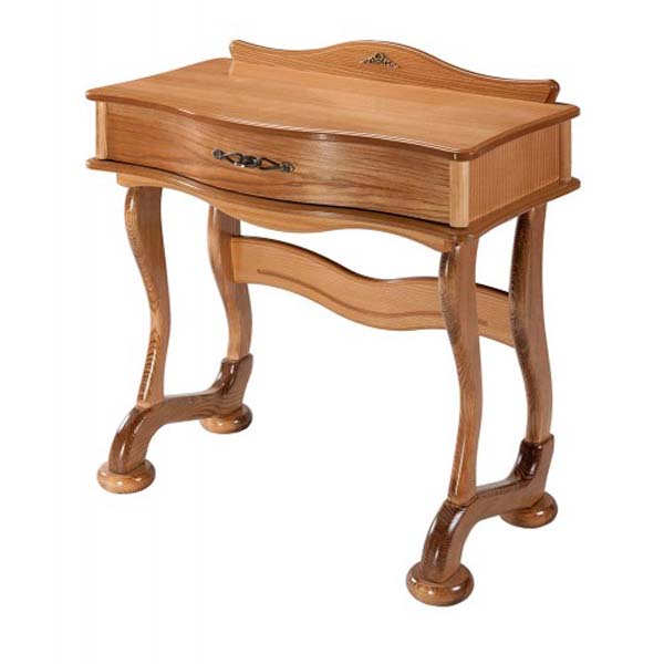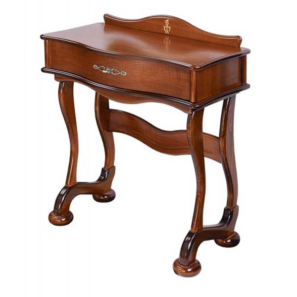 Изящный стильный туалетный столик. Плавность линий подчеркнут изысканность спальни. Большой выдвижной ящик позволит разместить необходимые предметы и аксессуары. Столик в сочетании с комодом, банкеткой и зеркалом составит отличный гарнитур.