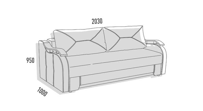 Спальное место дивана: 1950 х 1420 мм.